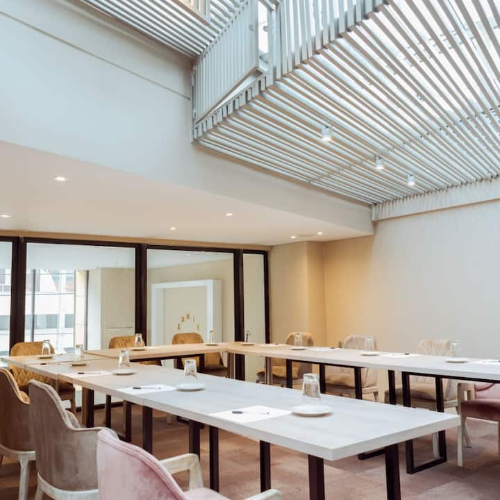 Un espace commun avec wifi, bien aménagé pour travailler.