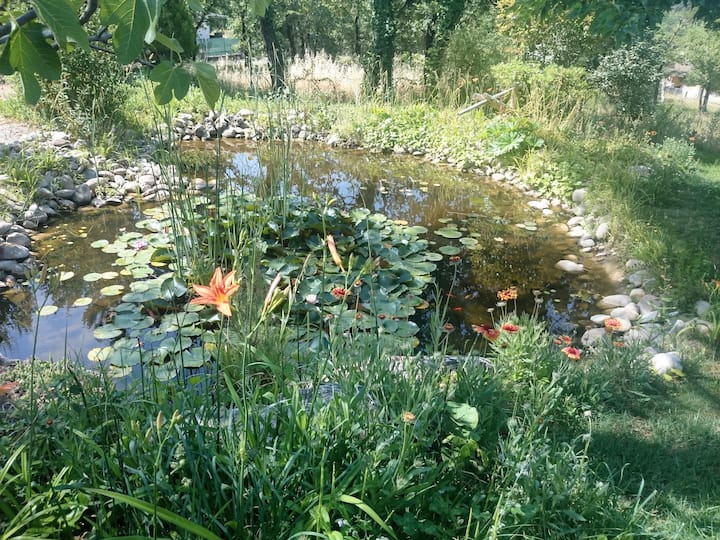 La maison principale s'agrémente d'un joli bassin et d’un jardin de rocailles.