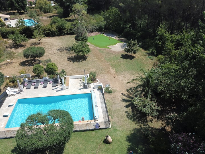 Villa 200 m2, 12p, Clim, piscine chauffée & golf