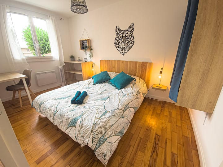 Une chambre avec wifi, bien aménagée pour travailler.