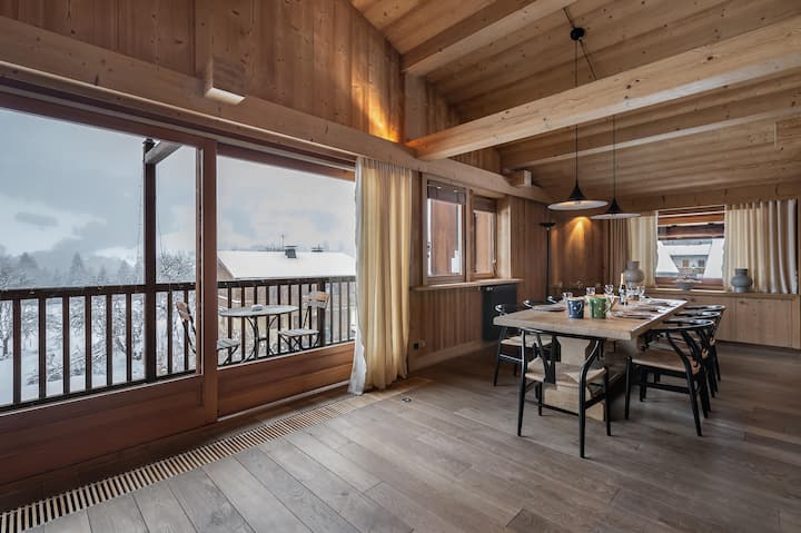 Le chalet Reine des Prés, situé à proximité de la télécabine de Rochebrune est un chalet idéal pour des vacances en famille à Megève. Une pièce de vie lumineuse, propose différents espaces, un salon télévision cosy, un salon...
