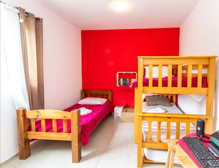 Une chambre avec wifi, bien aménagée pour travailler.