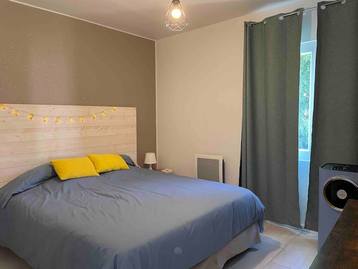 Une chambre avec wifi, bien aménagée pour travailler.