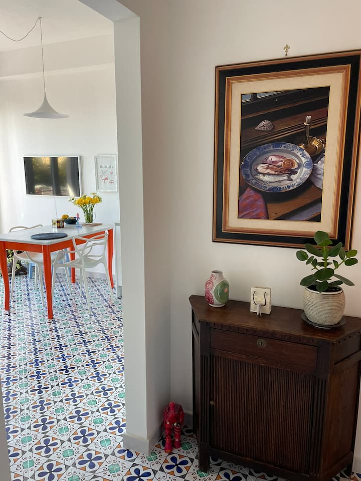 J'habite à Vietri et c'est mon appartement où je vis avec mon chien, mon adorable teckel Sandro.