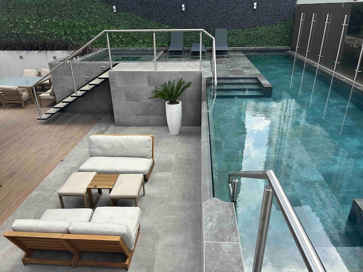 Appartement fonctionnel avec piscine dans un quartier animé