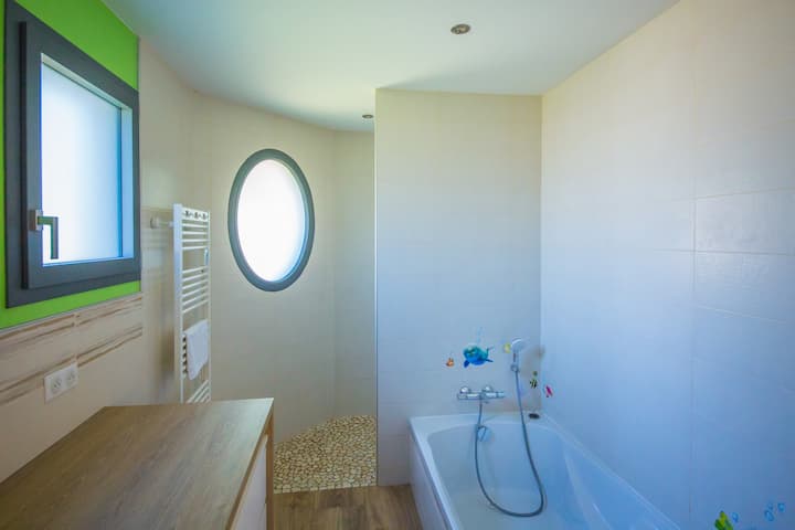 - une seconde salle de bain moderne équipée d’une douche à l'italienne, réduisant les attentes et stress matinaux.
