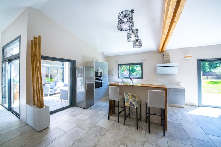 À l’extérieur, jacuzzi, piscine, jeux pour enfants et barbecue permettent de fêter vos retrouvailles. À l’intérieur, l’aménagement moderne et la qualité des équipements promettent un séjour reposant.