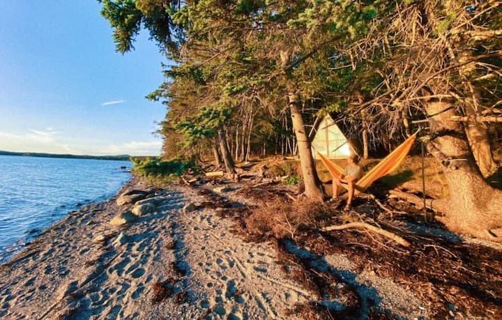 Regardez le coucher de soleil tout en cuisinant un repas. Déconnectez-vous et détendez-vous, admirez l'immensité des étoiles, le ralentissement du temps ici, et la grande tranquillité, alors que la marée monte et descend. La cabane est un camping pour camper hors réseau entièrement sans salle de bain privée, électricité ou eau courante.
