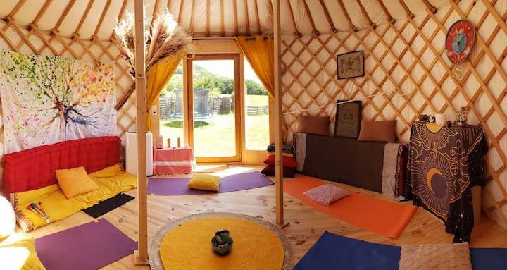 Je propose la location de ma Yourte, qui est aussi mon lieu de travail, pour plusieurs usage. Cela peut-être un week-end insolite entre amis, en famille ou amoureux mais aussi la possibilité de la louer comme lieu de travail (disponible les week-ends et en soirée) ou pour un lieu de stages/ateliers. Elle est dans le jardin de notre maison, une pièce attenante à celle-ci dispose d'une salle de bain et toilettes sèches. Le prix peut-être discuter selon l'utilisation que vous en voulez.