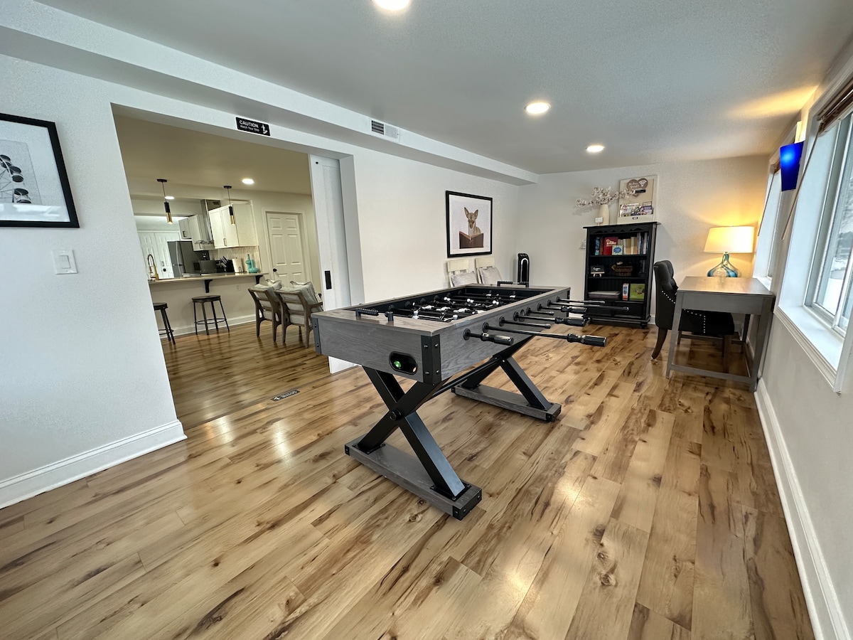 Lit King Size * Salle de jeux * À quelques minutes de DC * 5 téléviseurs * Patio