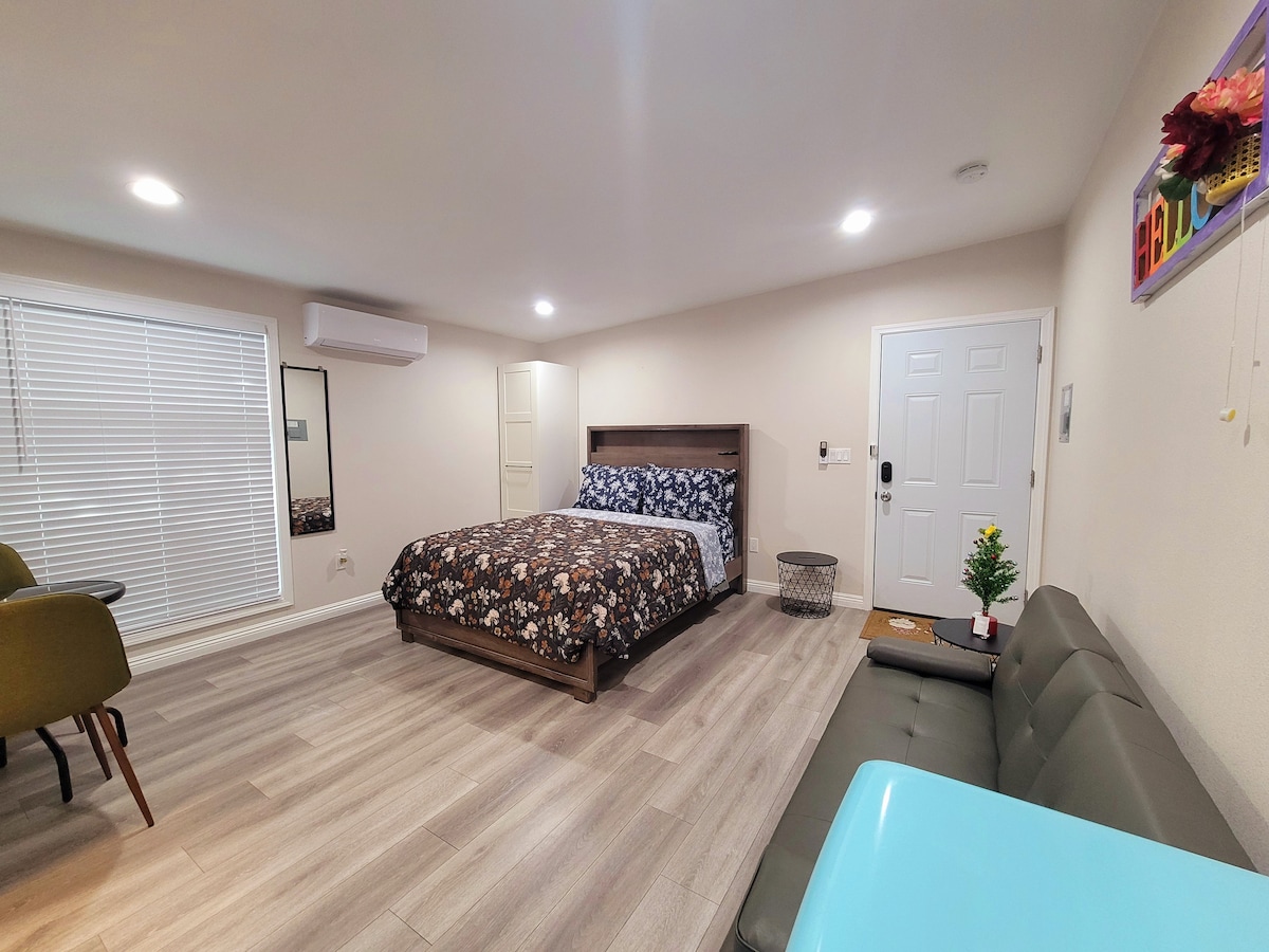 Il s'agit d'un studio entièrement rénové niché sur la colline tranquille. Il est dans un quartier calme calme. Il s'agit d'une maison arrière et l'hôte vit dans la maison avant. Il y a beaucoup de restaurants et de supermarchés à 5-10 minutes en voiture. La plupart des appareils sont neufs. Nouvelle télévision connectée 55" 4K et climatisation centrale dans toute la maison. La maison est fermée et dispose de places de stationnement gratuit dans la rue. Le lave-linge et le sèche-linge sont gratuits. Elle se trouve à environ 14 miles du centre-ville de Los Angeles, à 22 miles des studios Universal et à 26 miles du complexe de Disneyland.