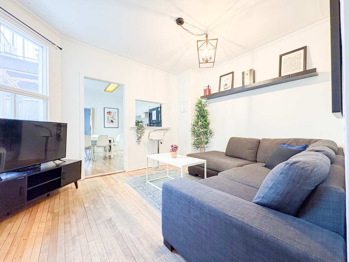 Élégant appartement d'une chambre entièrement rénové au cœur du centre commercial St Hubert avec tout ce dont vous avez besoin. À 5 minutes à pied du métro Beaubien et à 15 minutes du centre-ville. L'intérieur est calme et lumineux avec de nouveaux meubles et entièrement équipé. - Télévision connectée HD 55'' - Wi-Fi gratuit ; - Climatisation - Un lit queen size et un grand canapé confortable (6 pieds de long) - Cuisine équipée ; - Espace de travail dédié ; - Lave-linge et sèche-linge