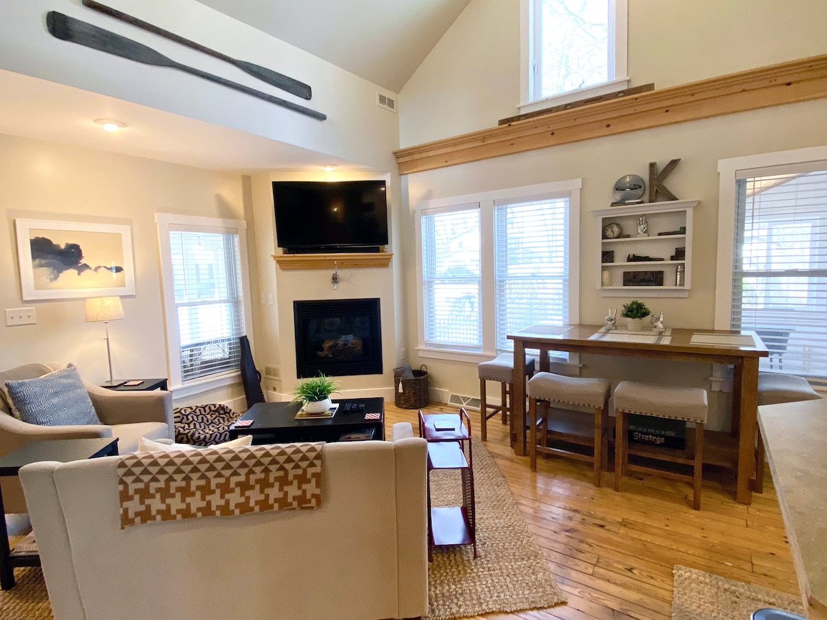Faites comme chez vous dans cette maison élégante, récemment rénovée et ensoleillée à Eastown Grand Haven. Tous les équipements de base dont vous aurez besoin et un parking gratuit. À moins de 20 minutes à pied du centre-ville, avec de nombreuses options de shopping et de restauration, et à 8 minutes en voiture de la plage (40 minutes si vous avez envie de marcher). Grand Haven est la meilleure petite ville balnéaire. Nous l'aimons et espérons que vous tomberez amoureux aussi ! REMARQUE : NOUS SOMMES SUR UNE ROUTE PLUS FRÉQUENTÉE, DONC LA CIRCULATION ET LE BRUIT DES PIÉTONS PEUVENT PARFOIS ÊTRE UN PEU PLUS.