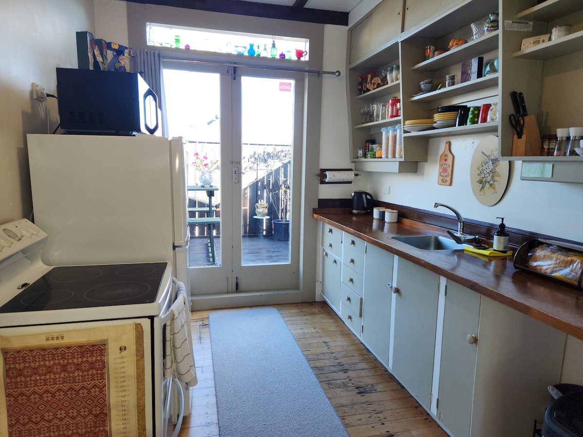 Profitez de notre unité de lit confortable et indépendante qui est détachée de la maison principale avec sa propre entrée privée et un parking en dehors de la rue. Notre logement n'est pas moderne dans son design ou sa décoration, mais il est propre et central avec un lit double confortable, des draps propres, des serviettes et de l'eau chaude pour la douche. Petit déjeuner simple fourni pour votre première nuit, le tout pour un tarif raisonnable dans une rue calme en cul de sac, à seulement 20 minutes à pied du centre-ville, ou à 5 minutes à pied de l'arrêt de bus pour les restaurants et les attractions touristiques.