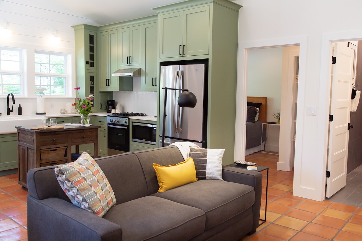Hosts Jen & Stan Mauldin offer A Beautiful Stay in The Cotton Gin Cottage, an updated 1940s workshop located within walking distance of the historic Georgetown Square and Southwestern University. The Cottage is located on a quiet lot surrounded by beautiful gardens and pecan trees. Quick access to Austin, Round Rock and Salado along with excellent restaurants and bars in Georgetown. Zero interface check in/out; key code provided after booking. Two night minimum stay and handicap friendly.
