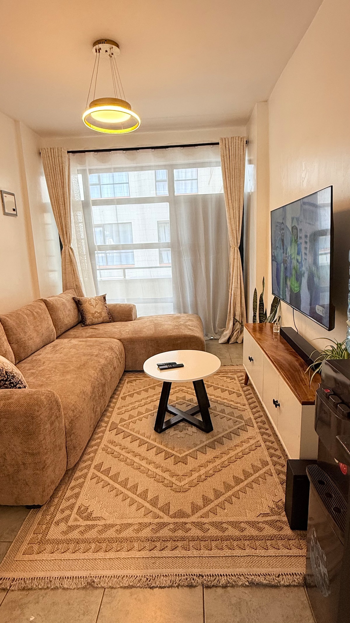 Il s'agit d'un appartement d'une chambre situé dans les appartements Lumumba Drive Tsavo. L'espace est bien éclairé, serein, ce qui est parfait pour la détente/les vacances. L'unité est un produit phare en raison de sa proximité avec le centre-ville de Nairobi, le centre commercial TRM et le centre commercial Garden City. Détendez-vous sur nos sièges confortables et profitez de Netflix. Notre kitchenette bien équipée vous aide à profiter de repas faits maison. Vous voyagez avec des amis ? Je gère plusieurs appartements dans le même immeuble, parfaits pour les groupes qui souhaitent rester proches les uns des autres.