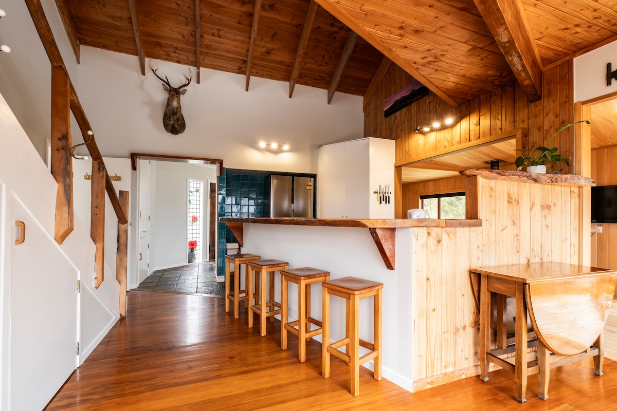 Bienvenue dans votre refuge privé à Ohakune : un appartement paisible et indépendant de 2 chambres parfaitement situé pour la traversée alpine de Tongariro, le parc national de Tongariro et la piste cyclable Old Coach Road. Entièrement indépendant avec votre propre entrée, kitchenette et parking. Idéalement situé dans l'île du Nord, idéal comme escale à mi-parcours pour les voyages en voiture. La navette locale à la porte facilite les jours de traversée. Autrefois presbytère catholique des années 1950, notre maison est toujours chaleureuse et accueillante.