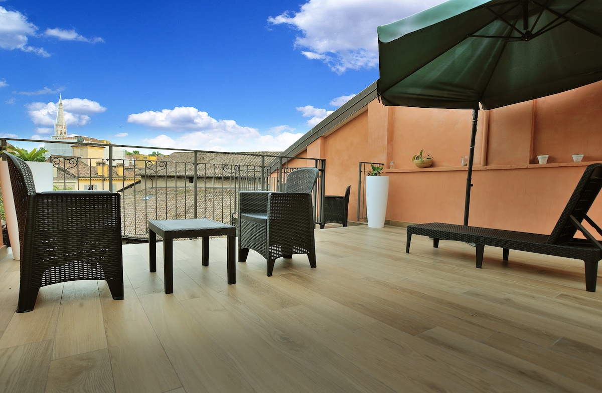 Profitez de vacances élégantes dans cette prestigieuse résidence décorée de fresques, récemment rénovée, sur la Piazza Pomposa. De grands espaces, la tranquillité, l’élégance et un emplacement central seront le cadre de votre séjour à Modène. Vous aurez également à votre disposition la grande terrasse panoramique en copropriété qui se trouve sur le toit de l'immeuble, d'où vous pourrez profiter d'une vue unique sur la Ghirlandina et les toits de la Modène antique. Vous recevrez un pass gratuit pour vous garer gratuitement dans le centre.