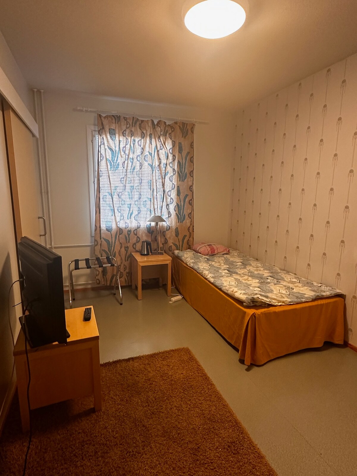 Chambre simple. Chaque chambre a ses propres toilettes et douche. Il y a un sauna partagé sur chaque étage. Séjournez dans une auberge de jeunesse paisible. Parking gratuit. Arrêt de bus à environ 150 m. En taxi depuis la gare à 5 min. Utilisation d'une cuisine spacieuse, d'une table de billard, d'une petite salle de sport. Grand balcon avec barbecue. Espace de travail. Wifi gratuit. Il y a toujours un sèche-cheveux, une télévision et une bouilloire électrique dans la chambre.