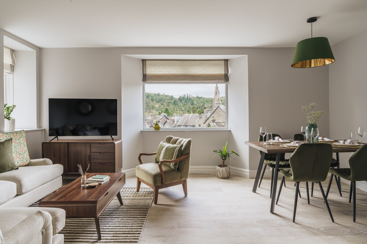 Enjoy a stylish experience at this centrally-located place. In the very heart of Grasmere, this stunning apartment has 2 comfy bedrooms each with their own en-suite. It is equipped with a fully fitted kitchen, and a comfortable dining suite for eating, drinking, playing games or watching the SKY GLASS TV. There is a private parking space for the use of guests, and the bus stop is conveniently just across the green. This really is the perfect accommodation for friends and family. Idyllic!