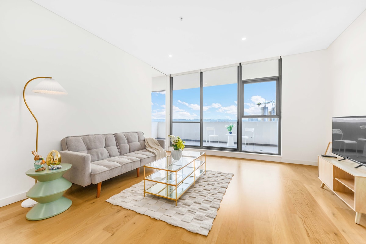 Séjournez avec style dans cet appartement luxueux et moderne de 2 chambres et 2 salles de bain en plein cœur de Macquarie Park ! À seulement 300 m du métro et juste en face du centre commercial Macquarie, tout ce dont vous avez besoin est à votre porte. Perché sur un étage élevé, il offre une vue imprenable, une place de parking sécurisée et un accès gratuit à une piscine et une salle de sport. Peut accueillir jusqu'à 4 voyageurs, parfaits pour les voyageurs d'affaires, les couples ou les familles.