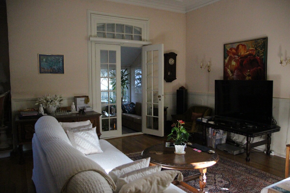 Grande villa édouardienne datant de 1908, à 10 minutes à pied de Stavanger Sentrum. Une retraite paisible pour les voyageurs avec des équipements professionnels. A des espaces de vie très distinctifs avec de hauts plafonds, des planchers de bois franc, de grandes cheminées ouvertes, de belles corniches sur les plafonds, les portes et les murs. La salle à manger et le conservatoire attenants donnent sur un jardin avec des pelouses et des espaces barbecue entourés d'arbres matures. Les espaces de vie, 4 chambres doubles (2 en suite avec salle de bains) et 2 salles de bains ont été restaurés par des professionnels.