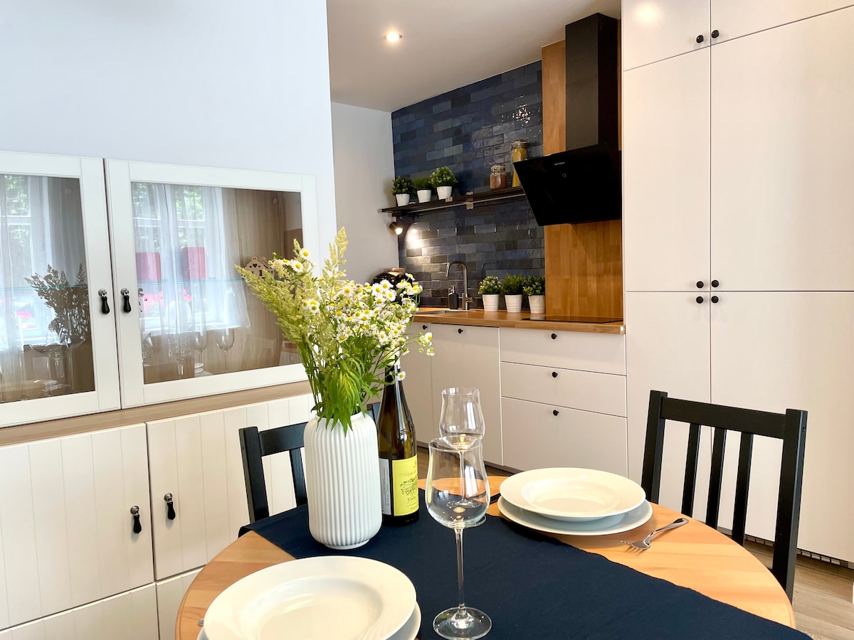 Un appartement moderne pour 2, 3 ou 4 personnes situé dans le centre de Cracovie au rond-point de Mogilskie. L'appartement est situé au rez-de-chaussée et se compose d'une chambre, d'une salle de bains, d'une kitchenette et d'une mezzanine. L'appartement avec fenêtres de la cour est calme et frais en été. La cuisine est entièrement équipée. Pour nos clients est disponible wifi, tv, réfrigérateur, micro-ondes, fer à repasser, sèche-cheveux et toujours de la literie et des serviettes fraîches. Collecte facile des clés à toute heure du jour et de la nuit par boîte à clés.