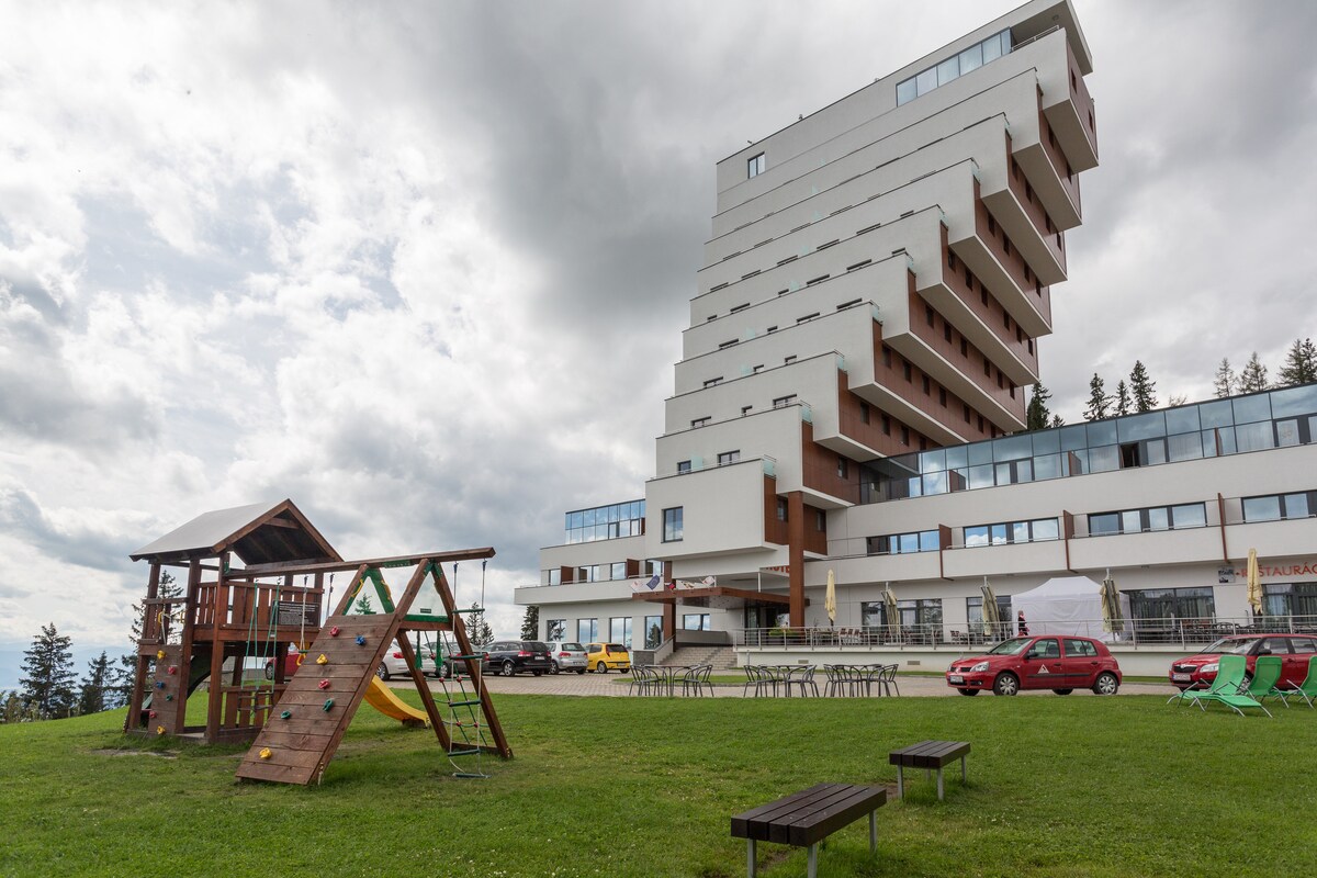 Appartement confortable dans un hôtel 4**** étoiles dans la station balnéaire des Hautes Tatras en Slovaquie (altitude 1300 m). Votre propre cuisine, salle de bain, balcon et garage au sous-sol. Vous pouvez utiliser le service de l'hôtel, le restaurant, etc. si vous le souhaitez.