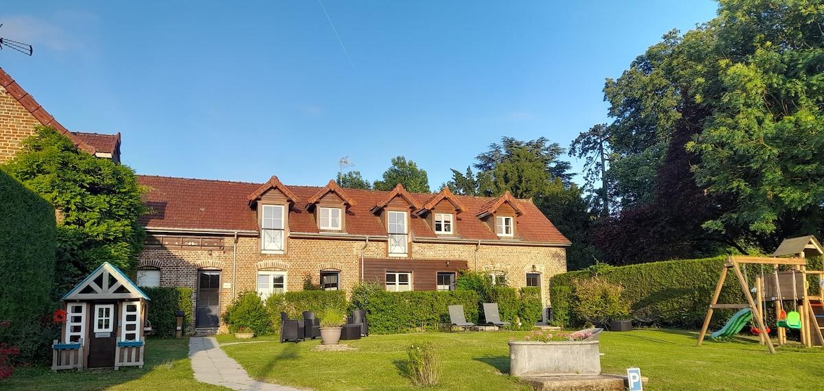 Maison de charme individuelle, de plain-pied avec cheminée à bois, jardin et terrasse exposés S-O privatifs et clos. Cet endroit mignon niché dans une dépendance de la maison des propriétaires, se trouve aux abords d'une ruelle peu passante et calme avec pour voisinage un grand parc arboré, la nature et les prés.Ce lieu non loin de la Baie de Somme, de la mer et la forêt sera propice à vous ressourcer sereinement le temps d'un WE, d'un congé, d'un moment de télétravail en couple ou en famille.