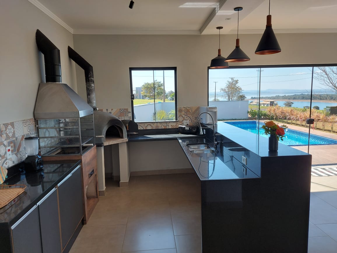 Piscine avec cascade 3 chambres, dont 2 sont des suites Il peut accueillir un total de 14 personnes, 10 en lits, 2 dans un canapé-lit et 2 en matelas. Rue avec asphalte Les clubs ont payé en moyenne 70 R$ par personne Il est situé dans le secteur de la Marina, près du barrage à côté de la rampe d'accès, du parc riverain et du club de la Marina Cuisine équipée des appareils modernes aux couverts et verres Filtrez avec de l'eau glacée. Arrivée/Départ flexible Climatisation dans toutes les pièces Piscine, barbecue et poêle à bois Téléviseurs connectés ;