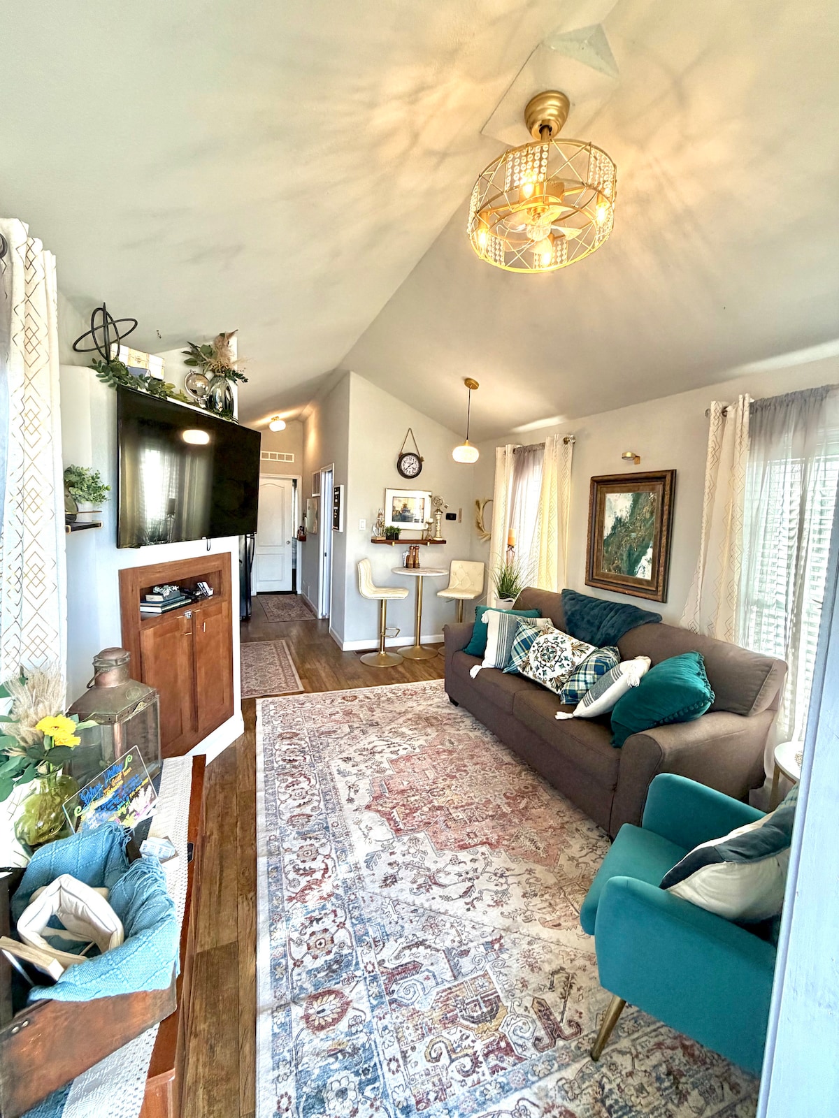 Calme, paisible et plein de nature décrivent cette adorable grange. Installé au milieu d'une ferme de 27 acres, il offre le sentiment « loin de tout » dont tout le monde a besoin. Admirez l'immense ciel pour observer les étoiles ou installez-vous dans les chaises du porche avant pour admirer le coucher du soleil. Un foyer et un barbecue confortables sont juste devant votre porte d'entrée, et si le temps vous oblige à rester à l'intérieur, profitez d'un film et d'une cheminée électrique. N'oubliez pas de dire bonjour aux adorables chèvres !