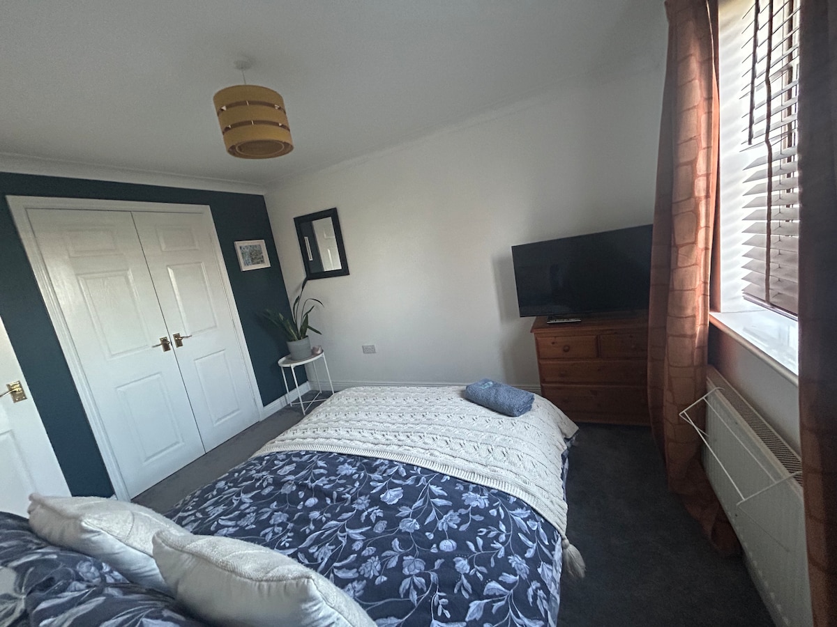 Détendez-vous dans cet espace calme et élégant. Il s'agit d'un appartement entier à réserver pour vous-même ou avec des amis. Il y a 2 chambres, une avec salle de bains privative, ainsi qu'un salon spacieux qui peut également être une chambre supplémentaire avec un canapé-lit king-size. Cuisine séparée, salle de bains avec baignoire ou douche, espace de travail si nécessaire pour préparer le dîner. Il y a un parking à 3 minutes à pied. Nous sommes proches d'AirBus, Rolls Royce, YTL, GKN, etc. Il y a un pub pour le dîner dans les deux directions à pied, lignes de bus toutes zones à 2 min.