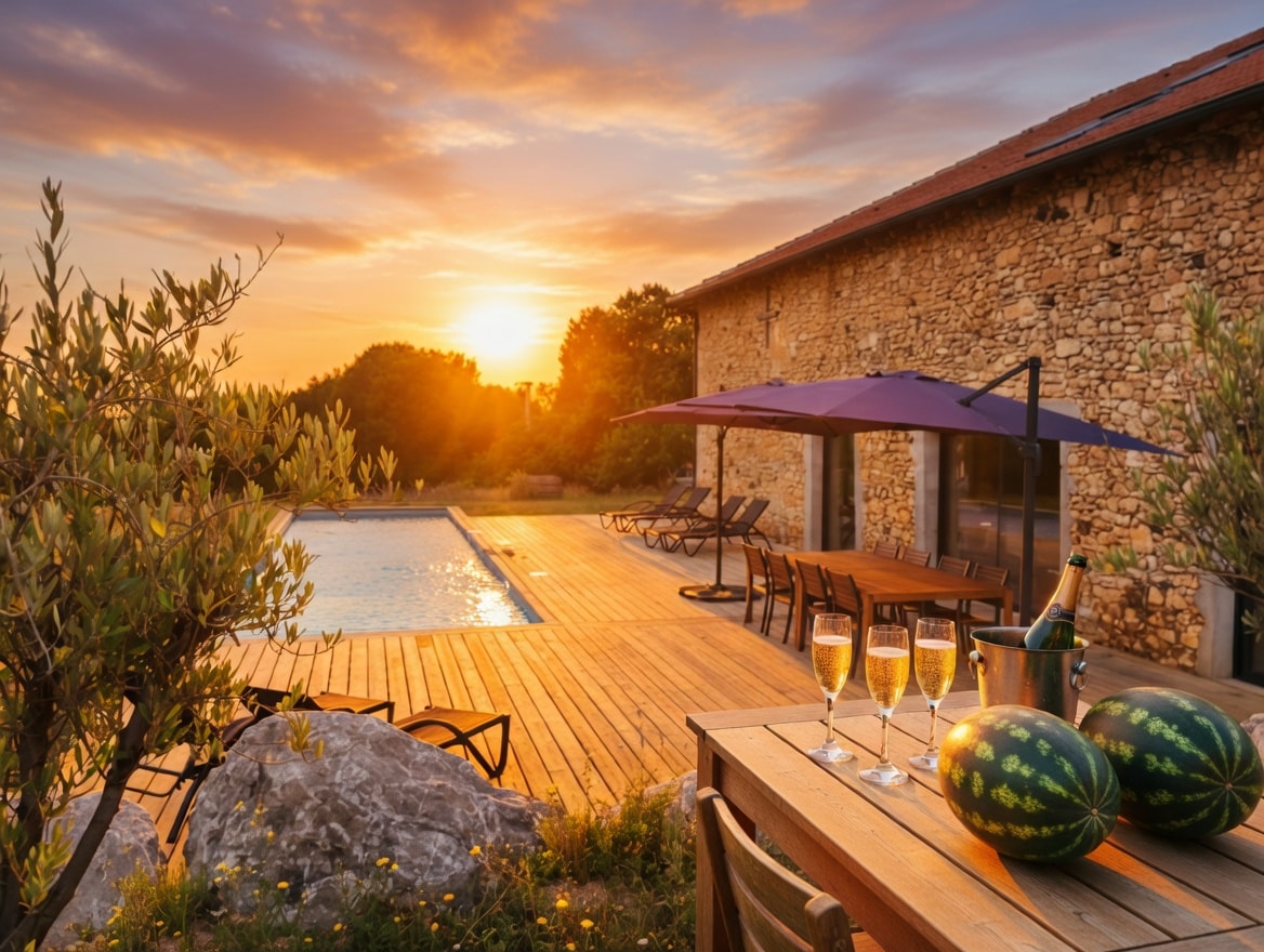 À 9 km au sud de Sarlat, Borietta est perchée sur l’éperon rocheux de Marqueyssac. Cette maison en pierres blondes offre une vue panoramique spectaculaire sur Domme, La Roque-Gageac et la Dordogne. Au cœur de la vallée des 1001 châteaux, elle allie calme, charme périgourdin et confort moderne dans un cadre naturel exceptionnel, idéal pour explorer les plus beaux sites du Périgord Noir.