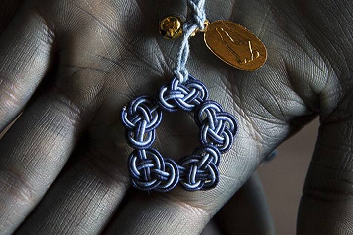Création de croix en denim de Kojima, coloré avec du style Sashiko