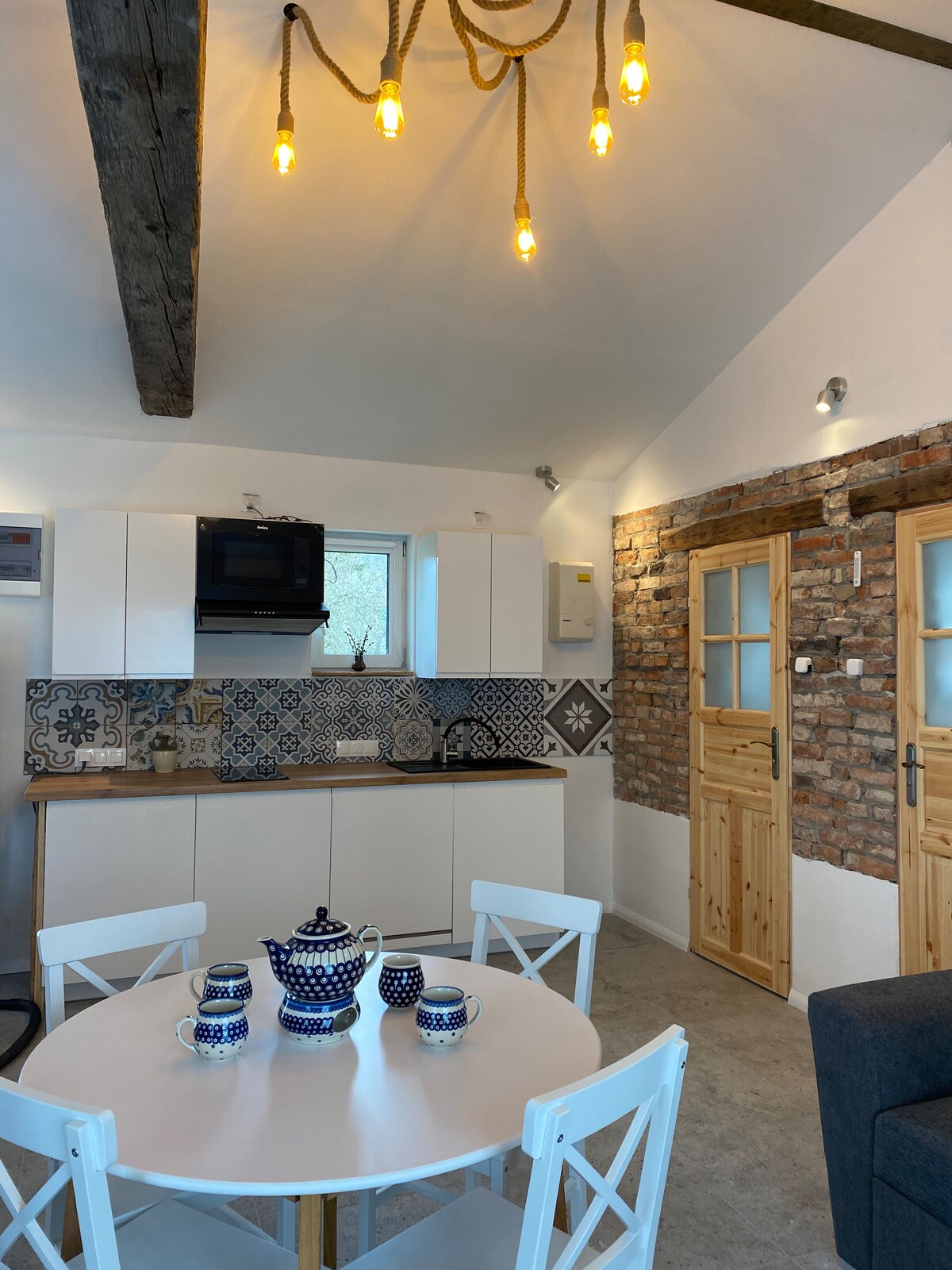 Toute la maison est exclusivement située à Bory Dolnośląskie en périphérie de la ville. De la porte, vous allez directement dans la forêt où il y a de beaux sentiers cyclables et pédestres. Maison équipée de meubles design, d'art. Entièrement équipée cuisine. Proche de la nature, des animaux sauvages, de la belle musique et d'une cheminée. Pour les soirées froides dans le jardin, il y a un jacuzzi et un sauna. Cheminée. Le petit déjeuner est disponible sur demande moyennant des frais supplémentaires de 65 PLN par personne et par jour.