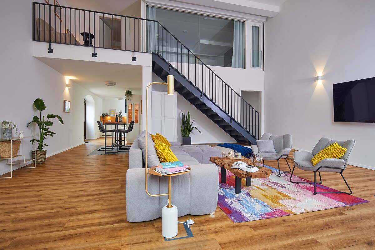 Cet appartement loft de 75m2 dans le quartier branché de Münster est à portée de vue sur la promenade. En quelques minutes, vous pouvez rejoindre à pied le château, le centre-ville, l'université et la vieille ville. L'appartement moderne est situé dans une maison arrière au calme. Dans les environs immédiats se trouvent des cafés atmosphériques, des bars, des pubs, des restaurants et le théâtre.