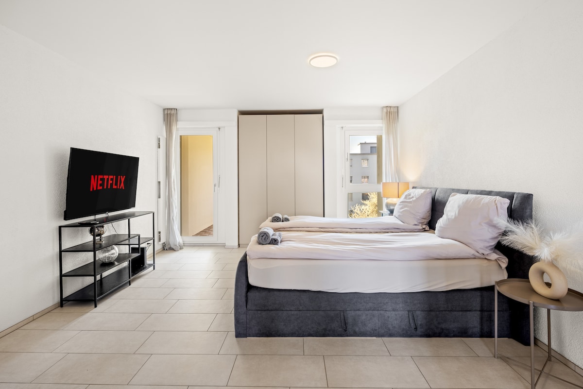 Cet appartement à Zurich offre un confort moderne dans un endroit central. L’espace de vie et de couchage lumineux invite à la détente. La cuisine entièrement équipée avec machine à café et la salle de bain moderne permettent de passer un agréable séjour. Une connexion Wi-Fi, une télévision et un canapé-lit sont également à disposition. La gare de Schlieren est à seulement 8 minutes à pied ; de là, vous pouvez rejoindre la gare centrale de Zurich en 8 minutes. L’aéroport est à environ 15 minutes – idéal pour les voyageurs d’affaires, les couples ou les familles.