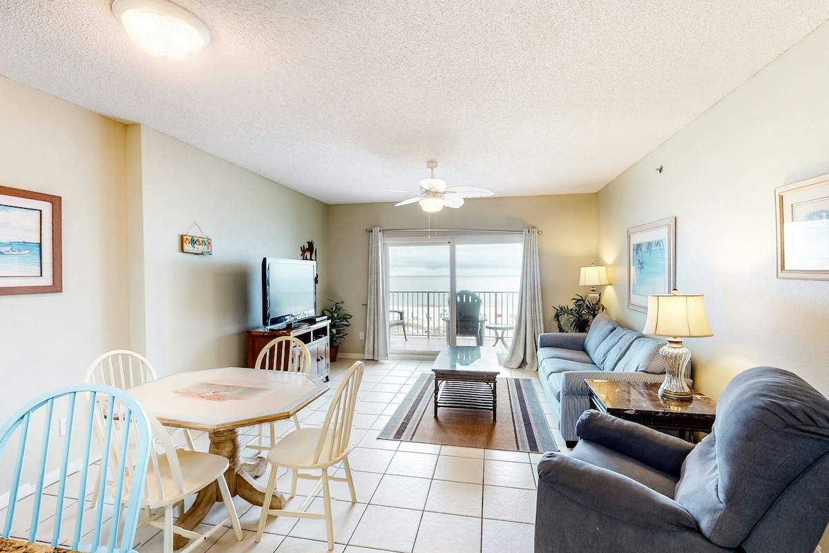 Condo rénové, superbes équipements, emplacement parfait, belle vue sur l'océan depuis le 5e étage ! Entrez dans cet appartement en copropriété rénové de 2 chambres/2 salles de bain avec vue du sol au plafond sur l'océan ! Ou sortez pour vous amuser ! Il y a 4 piscines extérieures, 1 piscine intérieure avec jacuzzi, aire de jeux aquatiques et piscine pour enfants, 3 jacuzzis extérieurs, une salle de sport et des courts de tennis. L'appartement est situé en plein cœur d'Orange Beach et se trouve à environ 6 miles de The Hangout & Warf et à moins de 3 miles du célèbre Flora Bama !