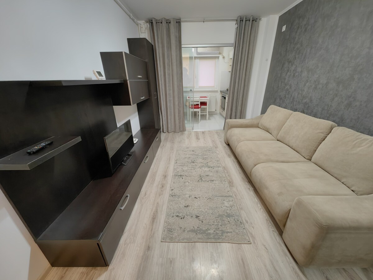 Si vous êtes en voyage à des fins touristiques, médicales ou professionnelles, nous avons un studio « confort inclus » à votre disposition. Le studio est situé dans l'ensemble Palladium Residence, dans un environnement propre et soigné, à proximité d'une grande zone commerciale, et d'un hôpital dans le réseau Regina Maria. La station de métro Nicolae Teclu est à 10 minutes à pied de l'emplacement. Le studio est parfaitement équipé pour rendre votre séjour le plus confortable possible. De rien !