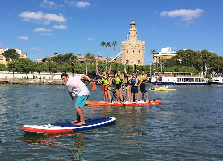 Stand Up Paddle au coucher du soleil à Séville illuminée