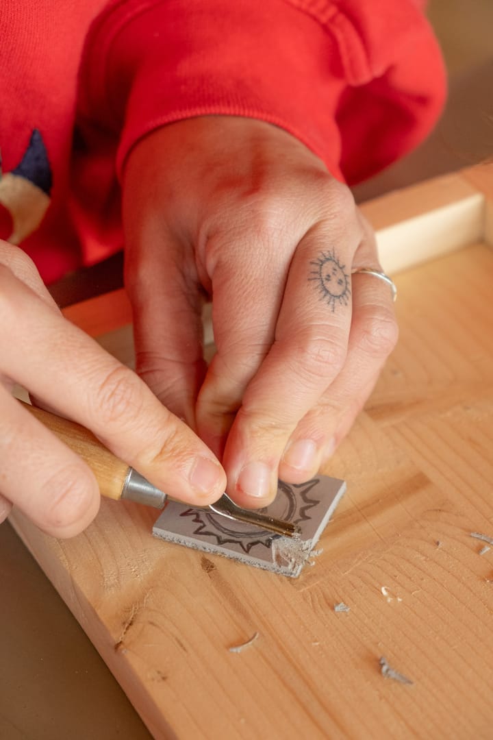 Atelier d'impression avec le linoléum