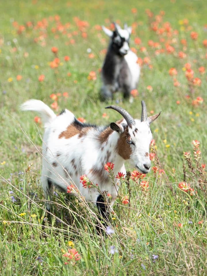Chasse aux œufs de Pâques avec des chèvres