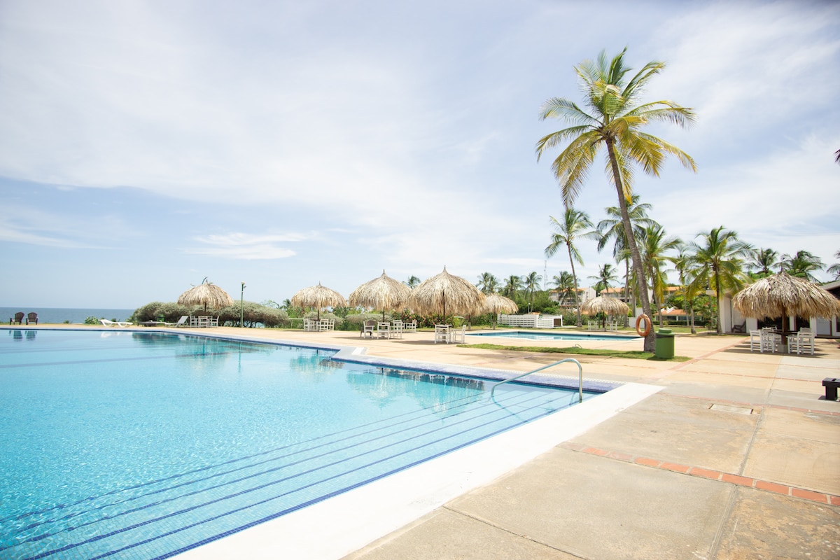 Appartement idéal pour les vacances, situé sur la plage de Guacuco, il dispose de 2 chambres, l'une avec un lit double et l'autre avec un lit superposé, un séjour avec une télévision avec Fire TV, WIFI, un canapé convertible, il dispose d'un balcon où vous pouvez placer un hamac, il dispose d'une salle de bain complète et d'une cuisine avec cuisinière électrique, il dispose de climatiseurs dans chaque chambre, dans les espaces sociaux il dispose de 2 piscines avec de belles vues, un espace barbecue avec tables, il dispose d'un accès à la plage et d'une place de parking.
