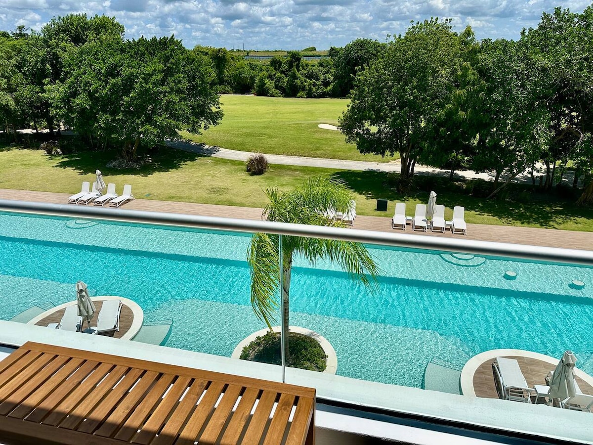 Terrain de golf + piscine privée sur balcon près de la plage