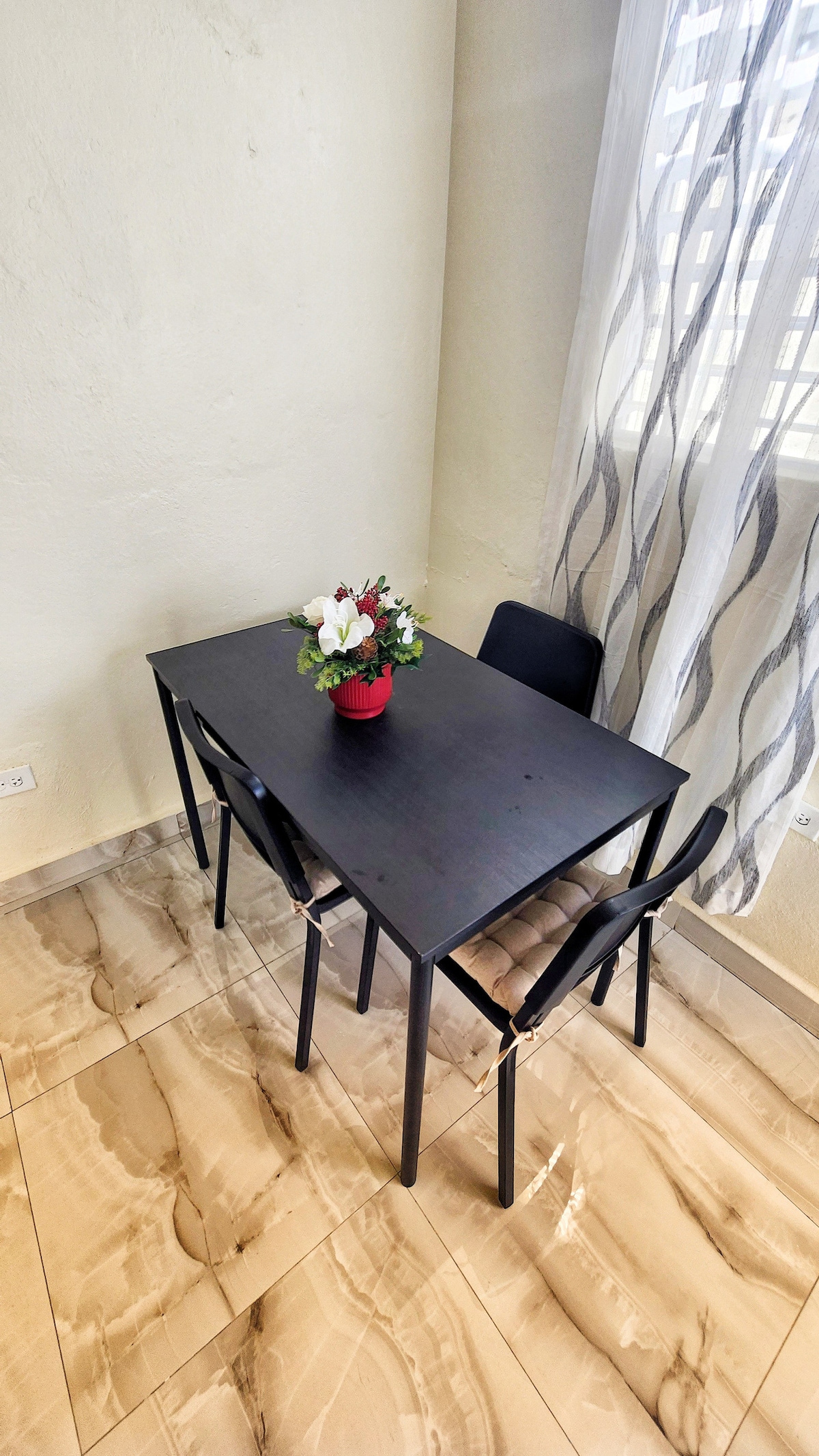 bel appartement à seulement 12 minutes de l'aéroport, dispose d'une chambre principale avec air et une autre chambre avec ventilateur de plafond super frais, parfait pour les couples et un autre client, a de l'eau chaude, cuisine équipée avec tout ce dont vous avez besoin, TV et un balcon pour fumer, à proximité des plages sur l'île verte, comté et à seulement 5 minutes de la Plaza Escorial où vous avez des restaurants, Walmart, des magasins et ainsi de suite, l'endroit idéal pour profiter des vacances.