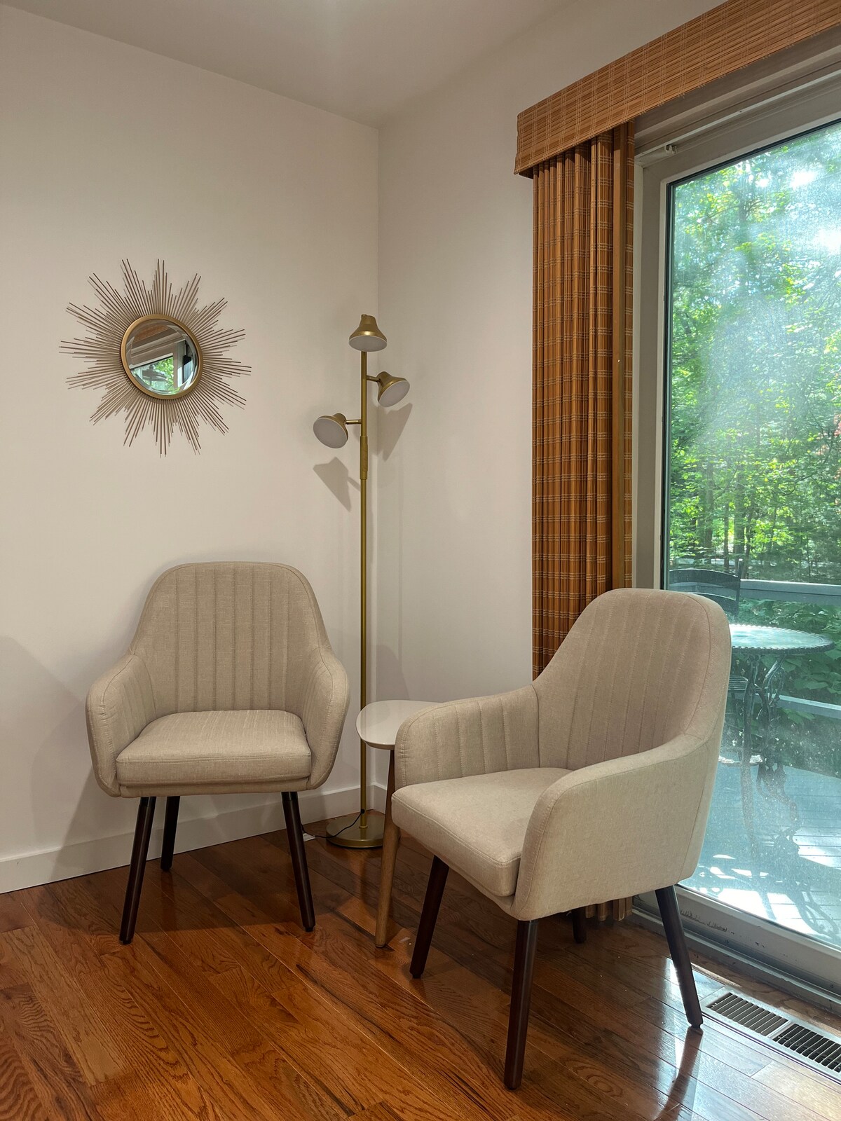 Ce studio lumineux et spacieux de Sag Harbor Village se trouve à 10 minutes à pied de la rue principale historique à 5 minutes de la plage du village. Portes-fenêtres s'ouvrant sur le coin salon extérieur. Idéal pour une visite d'automne ou d'hiver pour explorer la région pendant la saison plus calme. La rue principale est animée et tous les restaurants sont ouverts. Chauffage central avec ses propres commandes de thermostat et climatisation. La cheminée qui fonctionne et la baignoire spacieuse constituent une escapade idéale, confortable et romantique. Parking. Entièrement indépendant et privé.