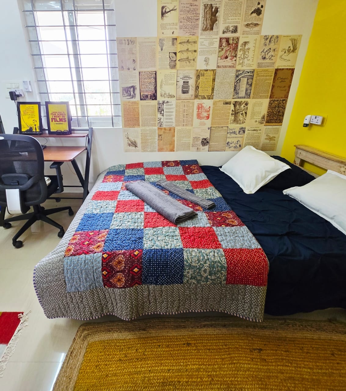 Réveillez-vous sur la meilleure ligne d'horizon de North Bangalore. Perché au 5e étage avec une vue à 360° sur la ville, avec un vent, une lumière et une intimité inégalés. L'immense balcon privé, rempli de plantes, est parfait pour le café du matin, les appels professionnels ou les dîners romantiques sous les étoiles. Et juste en face ? Emblématique The Café Buddha : pour le meilleur petit déjeuner anglais de la ville et de la musique live le week-end. Matelas allemand 12" pour un sommeil de rêve, espace de travail confortable avec les meilleures vues et télévision connectée 55" Idéal pour travailler, se détendre ou explorer.
