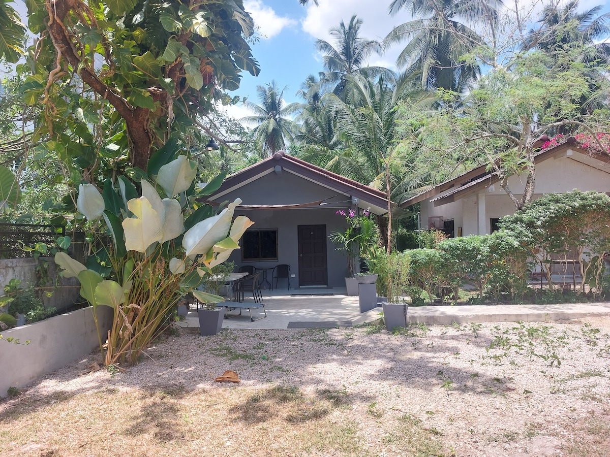 We are offering a modern bungalow style house with big windows over a scenic landscape with a natural pool, palm trees and lots of fruits and greenery. The place is the perfect destination for those who are looking for a place to escape modern life and still having all the convenience of AC and Wifi - while still being minutes away from Krabi City center and the beaches of Ao Nang.