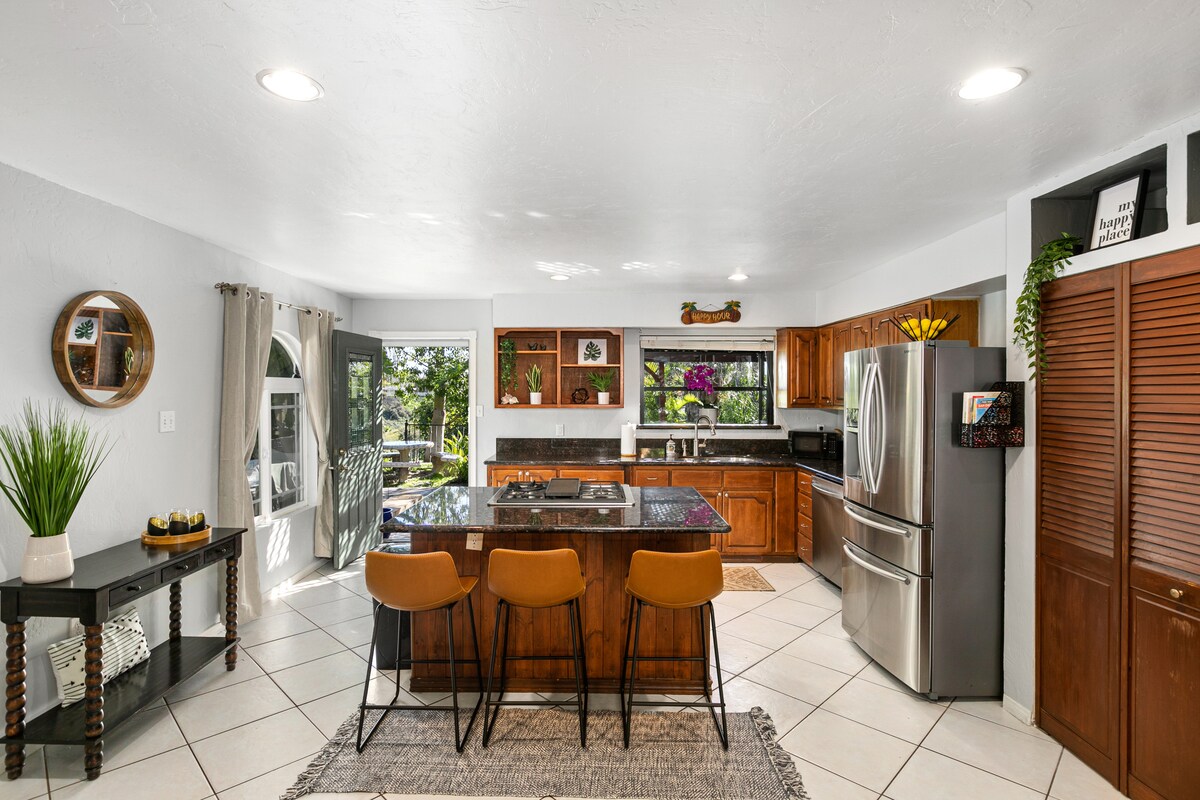 Réveillez-vous avec de superbes levers de soleil sur le canyon dans cette escapade tropicale entièrement repensée nichée dans un cul-de-sac calme et familial. La cour arrière tropicale dispose d'un salon et d'une salle à manger intérieurs/extérieurs donnant sur un canyon avec une vue magnifique et un environnement incroyablement privé. Profitez de la cuisine ouverte et du salon parfait pour que la famille et les amis se retrouvent après une longue journée sur l'une des nombreuses plages ensoleillées de San Diego. Apportez votre tapis de yoga ou profitez simplement de votre méditation dans cette retraite sereine.
