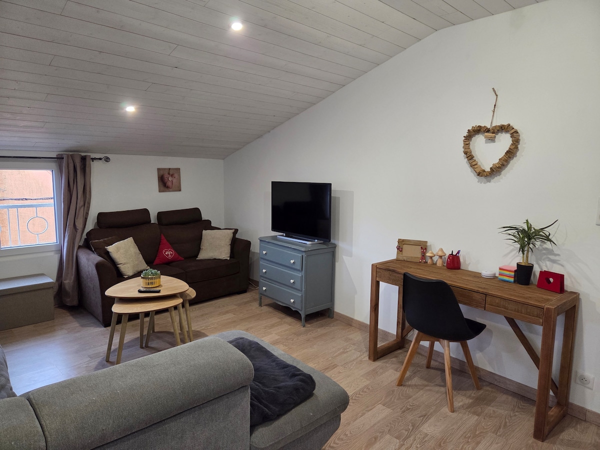 Pour le travail, pour des vacances, seul(e), en couple, ou entre ami(e)s, venez vous détendre dans ce logement élégant et tranquille. Cet appartement est entièrement rénové. Il comprend une chambre, une salle de bain avec WC, un salon équipé d'une télévision ainsi qu'une cuisine équipée. Il est idéalement situé, à deux pas de la gare et du centre ville. Wifi gratuite Arrivée en autonomie possible grâce à la boîte à clefs